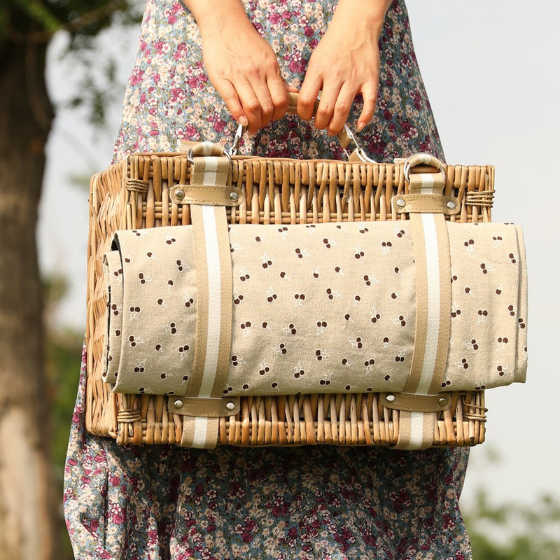 Picnic Basket Set with Foldable Table for 2-Beige